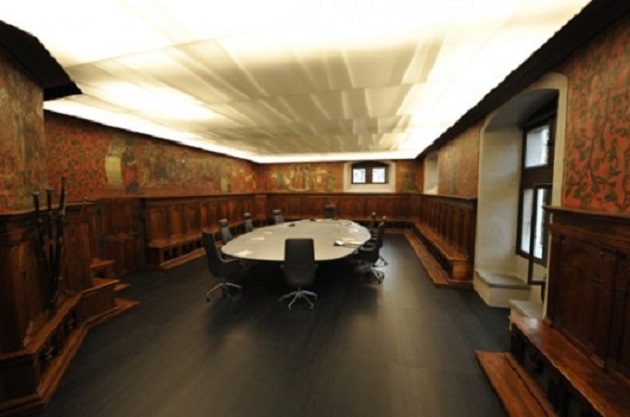 aux prospectus touristiques de Genève qui se situe dans la salle d’archive de la chancellerie,